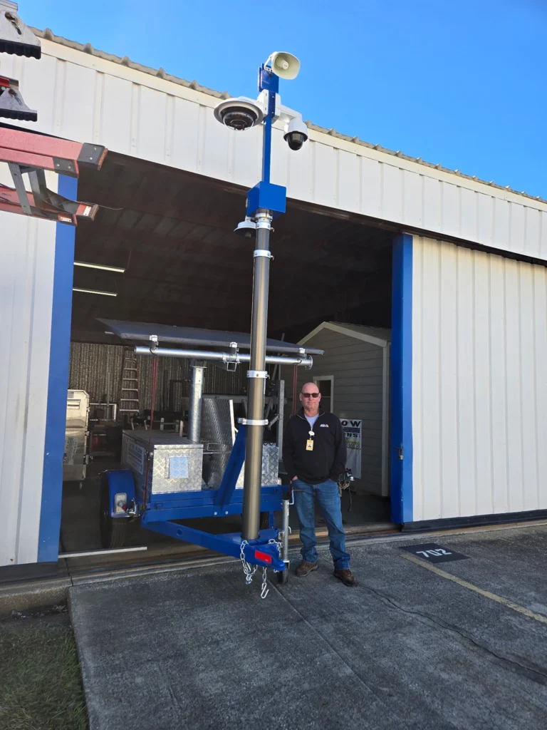 Our solar-powered surveillance camera trailer delivers reliable, off-grid security without trenching, wiring, or permanent infrastructure. Designed for rapid deployment, it can be towed into position, stabilized, and fully operational within minutes, then easily relocated as site needs change.