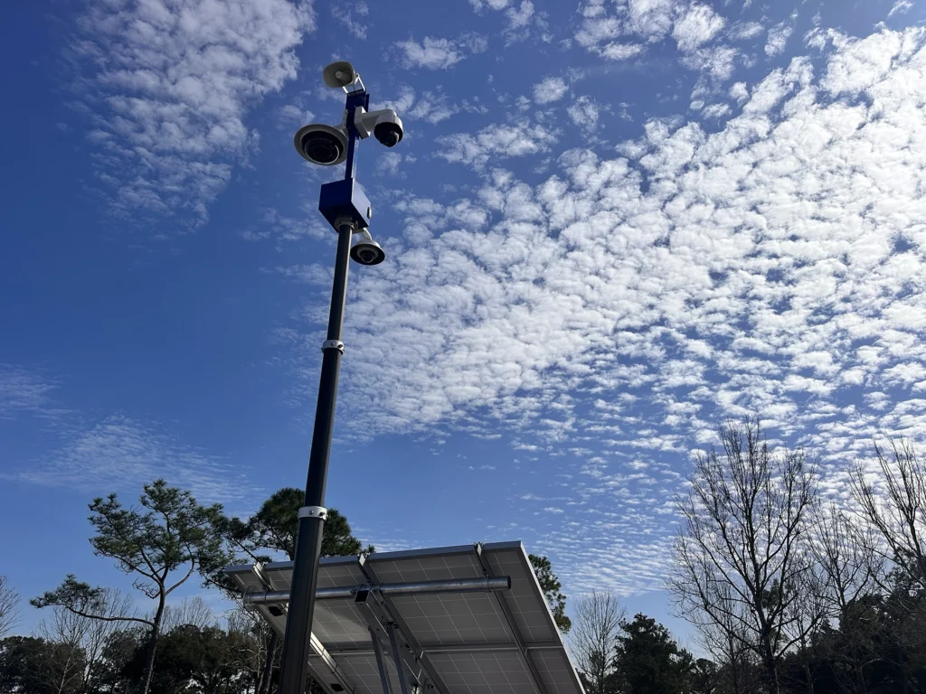 Featuring high-efficiency solar panels with onboard battery storage, the system provides continuous monitoring in remote or temporary locations. A multi-camera setup includes a powerful PTZ camera with up to 30× optical zoom for wide-area coverage and long-range detail. Optional live or automated audio announcements add an extra layer of deterrence when needed.